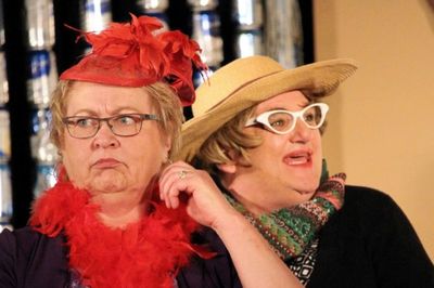 That's the playwright, Chris, on the right, in the role of Eunice in a production of the play in 2015.